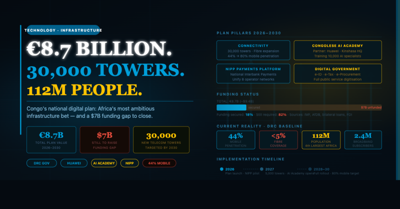 Congo’s €8.7B Digital Bet: 30,000 Towers, an AI Academy, and a Race Against Its Own Infrastructure Gap